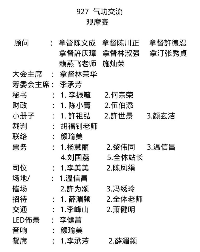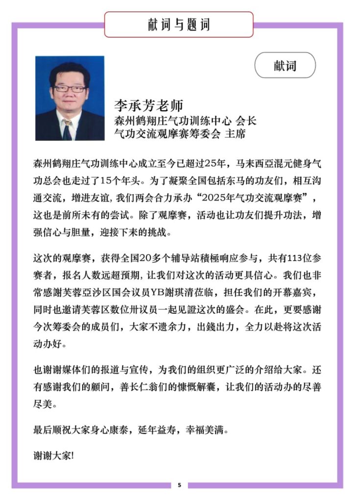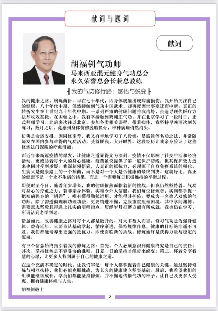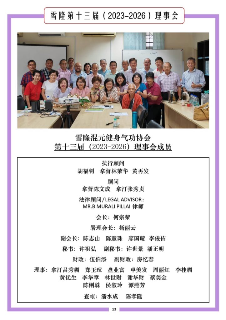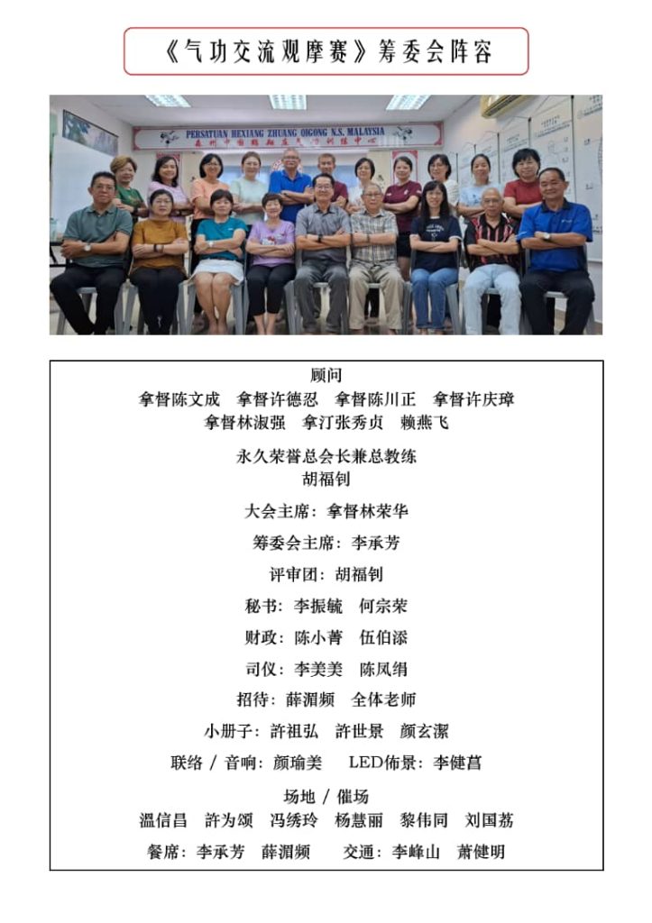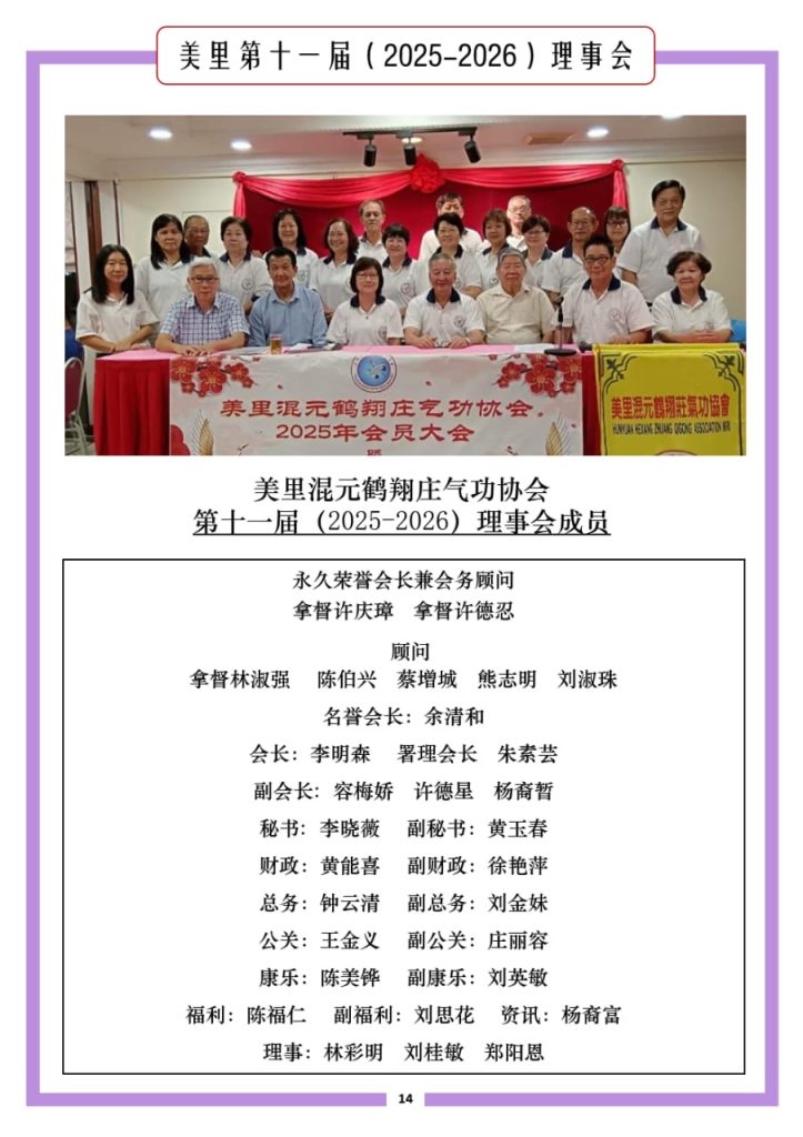 第十一届(2025 – 2026年)美里混元鹤翔庄气功协会理事会名单